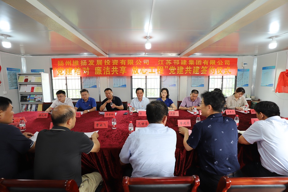 為實(shí)現(xiàn)黨組織優(yōu)勢互補(bǔ),努力構(gòu)建“資源共享、優(yōu)勢互補(bǔ)、互相促進(jìn)、共同提高”的企業(yè)黨建工作新格局,2019年9月4日,揚(yáng)州維揚(yáng)發(fā)展投資有限公司和江蘇邗建集團(tuán)有限公司在雙方共同參與建設(shè)的揚(yáng)州市蜀岡小學(xué)項(xiàng)目部開展黨組織結(jié)對共建活動。區(qū)委組織部副部長吳美珍、區(qū)紀(jì)委第二派駐組組長張明忠等領(lǐng)導(dǎo)親臨現(xiàn)場參加本次活動。 本次活動主要有六項(xiàng)議程:第一項(xiàng)議程由雙方董事長李兵、范世宏進(jìn)行“黨建結(jié)對 廉潔共享 放心工程”黨建共建簽約儀式;第二項(xiàng)議程由雙方黨建指導(dǎo)員王繼山和曹云飛互贈圖書;第三項(xiàng)議程由李崇和同志宣讀西區(qū)新城黨工委關(guān)于成立揚(yáng)州市蜀岡小學(xué)臨時(shí)黨支部的批復(fù);第四項(xiàng)議程由區(qū)委組織部副部長吳美珍、西區(qū)新城黨工委代表李崇和及雙方董事長進(jìn)行揭牌儀式;第五項(xiàng)議程由共建雙發(fā)進(jìn)行座談會,雙方董事長交流發(fā)言;第六項(xiàng)議程由區(qū)委組織部副部長吳美珍做總結(jié)發(fā)言。 現(xiàn)場,儀式簡約,但氛圍熱烈。結(jié)對共建雙方介紹了各自的黨建概況,深入交流分享了企業(yè)黨建工作中的積極經(jīng)驗(yàn)和有效方式,確立了今后共建活動和工作方向。 揚(yáng)州維揚(yáng)發(fā)展投資有限公司董事長李兵特別強(qiáng)調(diào):開展結(jié)對共建活動,是維揚(yáng)發(fā)投進(jìn)一步創(chuàng)新國有企業(yè)黨建工作的有益嘗試,也是鞏固深化與邗建集團(tuán)合作關(guān)系的重要契機(jī)。希望以開展結(jié)對共建活動為抓手,共同推進(jìn)雙方黨建工作和業(yè)務(wù)工作互促互進(jìn),構(gòu)筑起“共建、共享、共贏”的和諧發(fā)展新格局。相信在黨建工作的引領(lǐng)下,在結(jié)對共建的征程中,維揚(yáng)發(fā)投與邗建集團(tuán)的合作將更加緊密、更加深入。雙方要把黨建互促的政治優(yōu)勢充分轉(zhuǎn)化為企業(yè)改革發(fā)展、服務(wù)地方群眾的實(shí)際行動,共同在全區(qū)高質(zhì)量發(fā)展大潮中取得新成效、新進(jìn)展、新勝利。 會議最后,區(qū)委組織部副部長吳美珍對本次共建活動給予高度評價(jià)并提出三點(diǎn)期許:一是要把各方資源匯聚一線。要通過發(fā)揮黨的政治引導(dǎo)力,整合各方資源,“擰成一股繩”,把共建活動開展好、臨時(shí)支部打造好、項(xiàng)目工程建設(shè)好;二是要把黨的聲音傳到一線。通過搭建好的支部陣地、培養(yǎng)好的黨員隊(duì)伍、組織好的黨建活動等一系列舉措,將黨的聲音傳到黨支部、傳到項(xiàng)目部,充分凝聚黨員職工、提升企業(yè)文化,促進(jìn)企業(yè)發(fā)展;三是要把黨建作用發(fā)揮到一線。共建雙方要把握企業(yè)發(fā)展需要,不斷開拓創(chuàng)新,做深做實(shí)結(jié)對共建,積極推進(jìn)企業(yè)黨建交流融合,實(shí)現(xiàn)資源共享,進(jìn)一步延伸企業(yè)黨建觸角,放大企業(yè)黨建工作效應(yīng)。