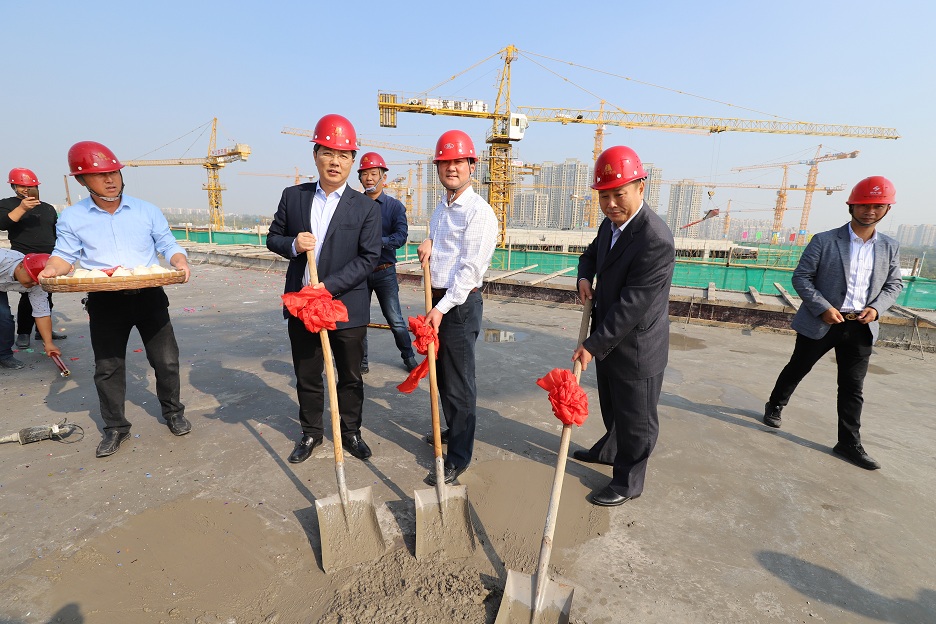 20191020日上午,揚(yáng)州市蜀岡小學(xué)建設(shè)工程封頂儀式隆重舉行,董事長(zhǎng)李兵、副總經(jīng)理姜晉堯,參建單位主要負(fù)責(zé)人參加了封頂儀式。